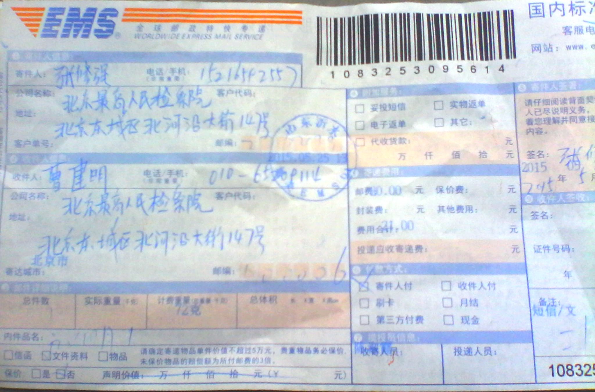 吉林省吉林市法轮功学员高洪财、任世荣夫妇,在江泽民发动的迫害中多次被绑架、关洗脑班,两次被非法劳教,受尽折磨。两人于二零一五年六月一日将控告前中共头子江泽民的刑事控告书,通过邮政特快专递(EMS)邮寄给位于北京的最高检察院及最高法院,要求对江泽民提起公诉。