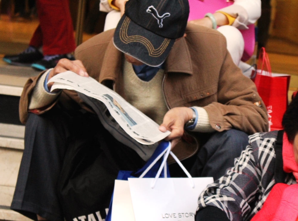 ![]() 图3:文章刊登照片,一位Galeries Lafayette店前的中国大陆旅游者专心阅读《大纪元时报》。 |