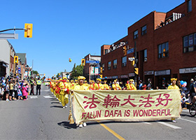 加拿大密西沙加市举办的第四十三届丰收节游行在密市拉开序幕。由法轮功学员组成的天国乐团和腰鼓队再度应邀参加,受中西观众欢迎。