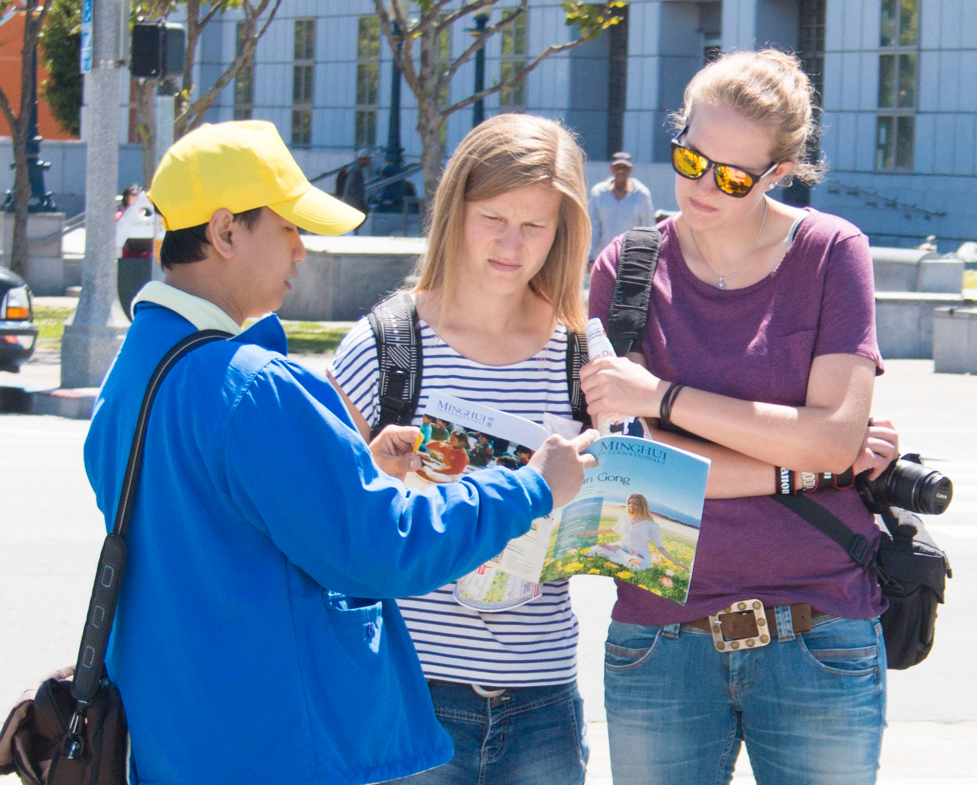 张虹表示,我们之所以选择在旧金山市政厅广场排字,因为市政厅是个地标,每天都有许多来自世界各地的游客,包括从中国大陆来的游客来这里观光。我们通过这个活动,把法轮大法的美好带给旧金山,以及来自世界各地的游客。