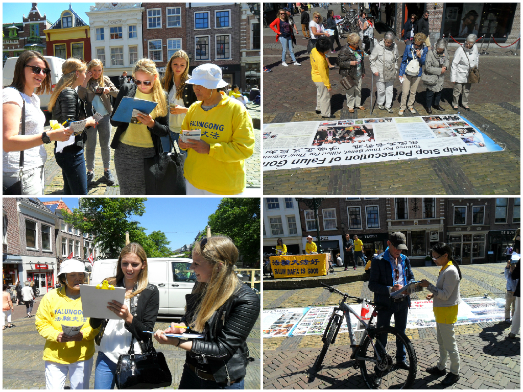 荷兰民众听闻真相后,纷纷签名谴责中共,要求立刻停止迫害法轮功信仰。居民踊跃的签名很快就把带去的表格签完,法轮功学员们又去复印一些表格还是不够用,明白真相的居民很快就签完。