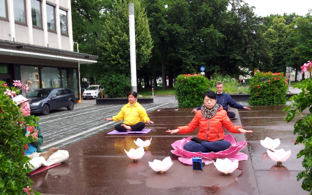 很多走过、路过的民众,对法轮 功学员伸出大拇指,表示敬佩和支持,还有的会对学员说,你们做的太了不起了,希望有更多的人关注这件事。还有很多民众驻足长时间观看法轮功学员炼功,并表示愿意周末的时候去炼功点,跟着学员一起炼功。
