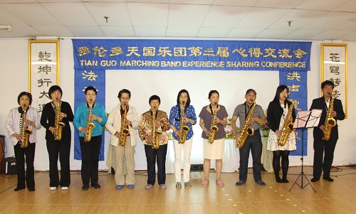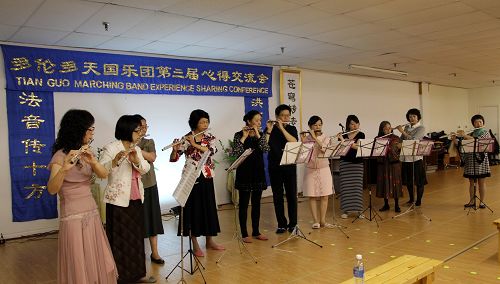 吹长笛的陈女士在交流中说道:“多伦多天国乐团从二零零六年四月成立的第一次集训到当年五月十三日法轮大法日,不足一个月就参与了大法日庆典,在室外舞台演奏大法弟子创作的曲子,经过九年多的集训,天国乐团已成为加拿大多伦多主流社会不同族裔举办各类游行活动的最佳主角。”