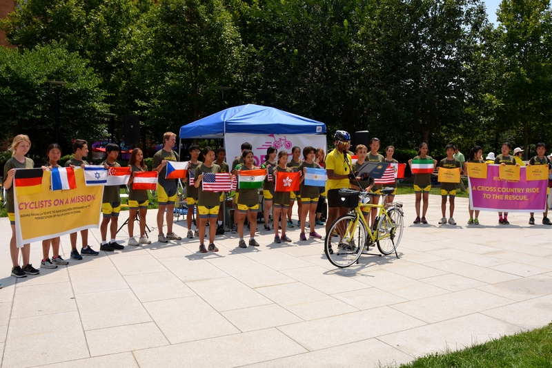 十九岁的陈奕珊(Annie)是“骑向自由”车队队长,她介绍说,我们六月一日从洛杉矶出发,下个周末将到达华盛顿特区,全程三千英里。我这里要告诉你们的不是这路程的遥远与艰辛,我要强调的有几点:一个是勇气,因为我们在这个过程中都克服了许多困难;一个是信心,因为不管中国大陆怎么打压,我们知道“真、善、忍”都是对的;第三个是自由,我们要为那些因为信仰而遭受迫害的人们、还有孩子发声。那些孩子们年纪小,也无法表达他们经历的痛苦。他们需要你、我的帮助,人性与道义上的支持。