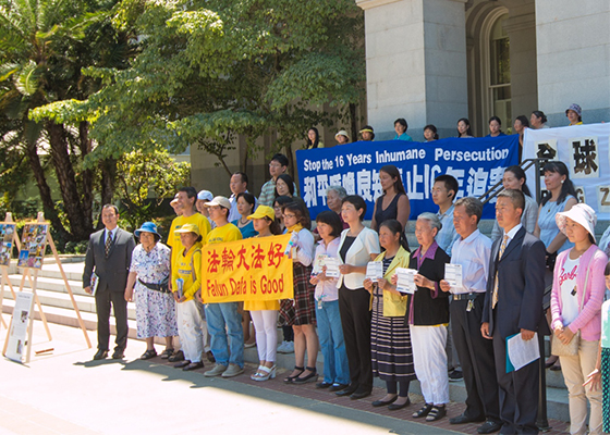 - 加州州府诉江集会 州议员声援诉江大潮(图)- 七月十四日中午,北加州法轮功学在首府举行起诉江泽民的集会。加州州参议员乔尔•安德森特别派助手丽贝卡•库尔茨出席集会并发言。