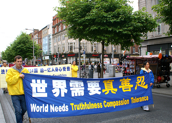 - 反迫害十六周年 爱尔兰学员集会游行(图)- 七月十一日,爱尔兰法轮功学员在都柏林举行游行、集会、功法演示和酷刑展,呼吁制止中共对法轮功学员持续了十六年的残酷迫害。