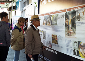 - 黄埔军校毕业生:应该起诉江泽民 他坏透了(图)- 七月十一、十二日两天,法轮功学员分别在悉尼班克斯镇和博霍德市中心的主街上展示真相横幅,声援中国民众控告江泽民大潮。