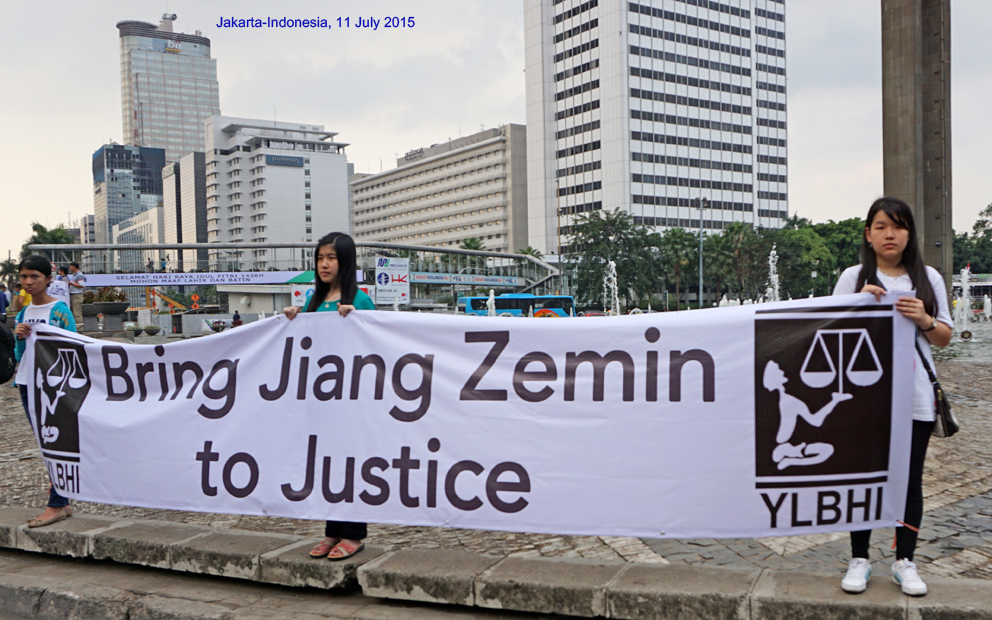 ![]() 印尼人权监督协会送来横幅,支持中国民众控告江泽民 |