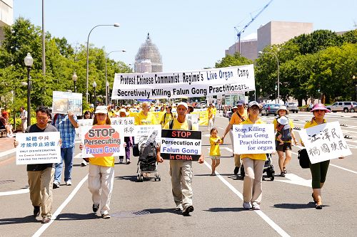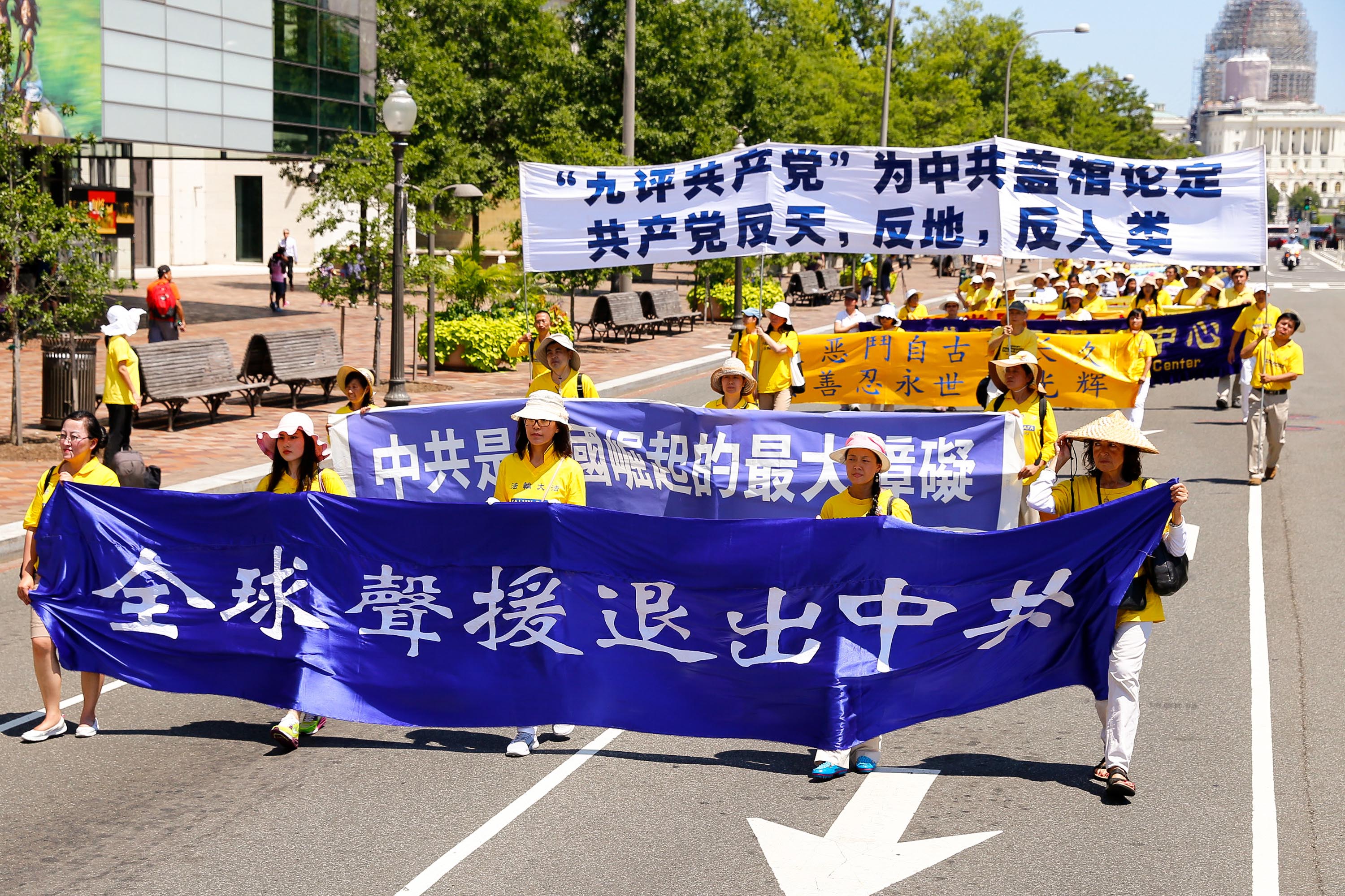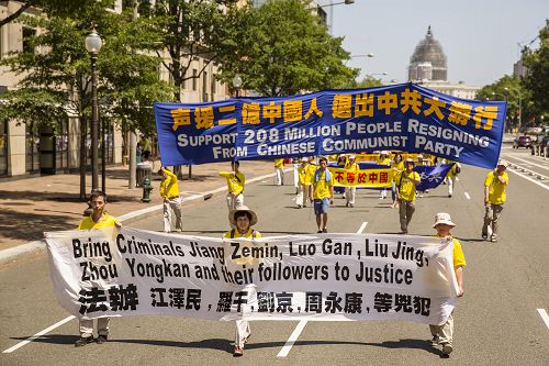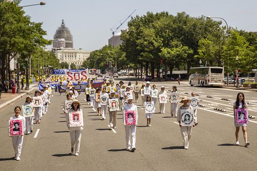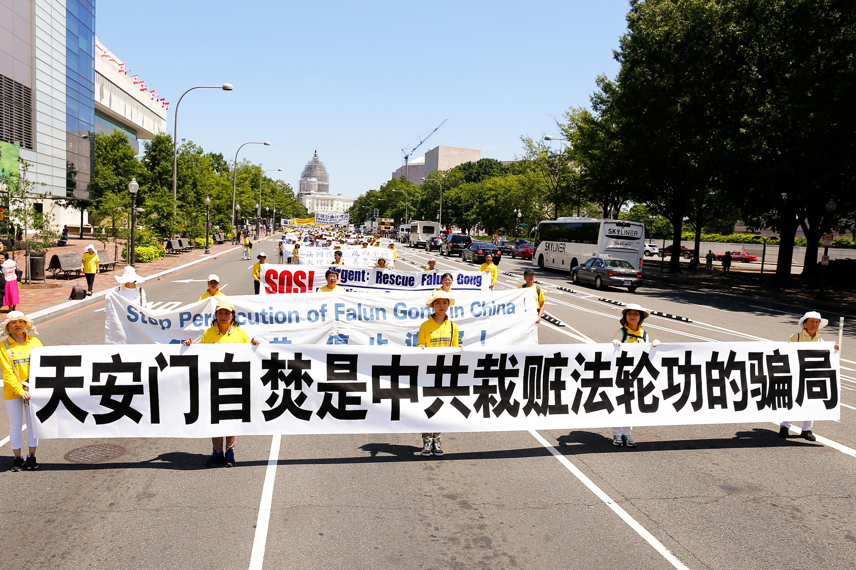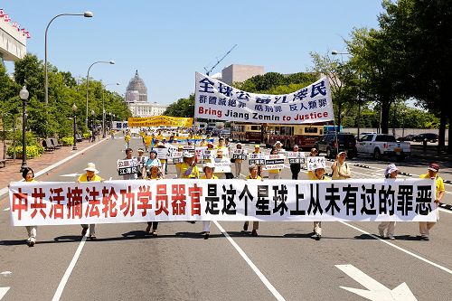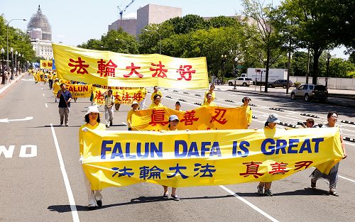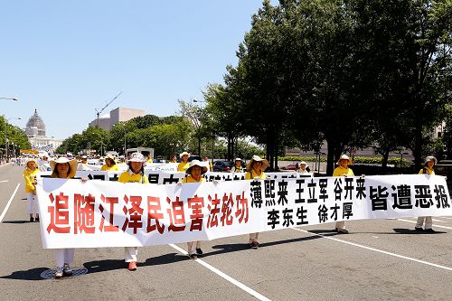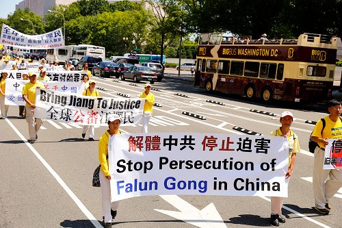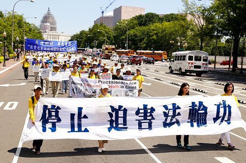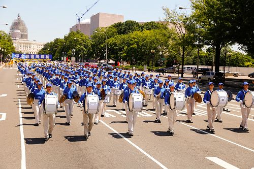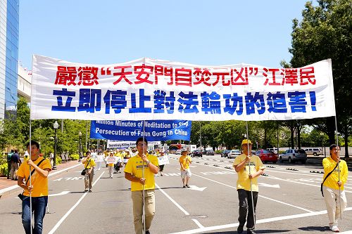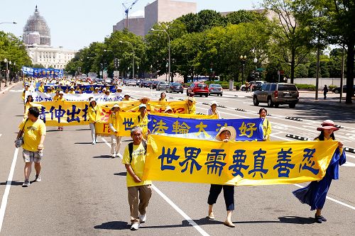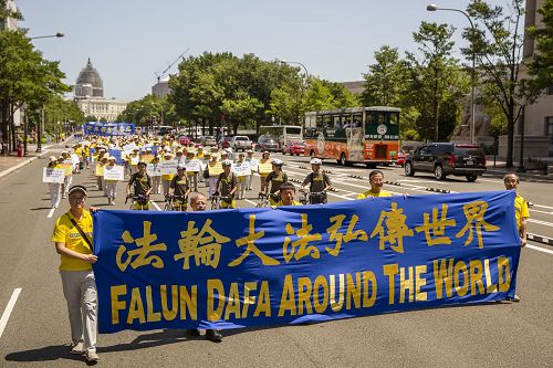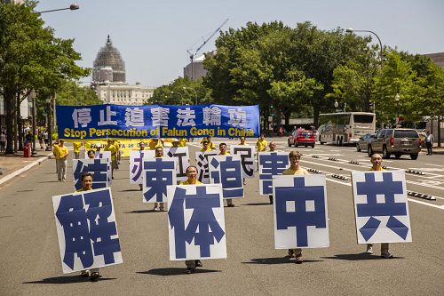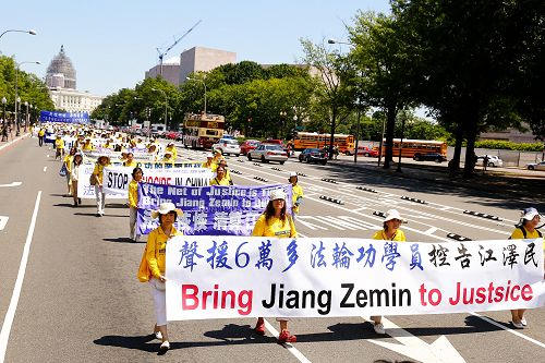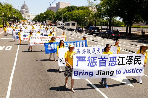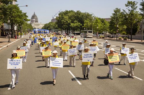 法轮功学员手持“停止迫害、法办元凶”,“法轮大法好”,“世界需要真善忍”“法办江泽民”,“声援六万多民众诉江”,“全球声援退出中共”等横幅和真相展板,一路走过国会山、宪法大道,途经美国司法部、联邦调查局(FBI)等政府机构,还经过白宫,最终到达华府的地标——华盛顿纪念碑,全程共1.3英里,游行队伍绵延数百米。