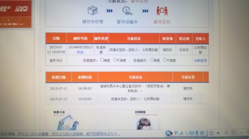 【明慧网二零一五年七月十七日】(明慧网通讯员河北报道)河北廊坊优秀教师陆彩霞,二零一五年六月六日和九日,先后向最高人民检察院和最高法院邮寄递交了刑事控告书,控告发动这场对善良人迫害的罪魁祸首江泽民,已经接到最高检和最高法的签收回复。