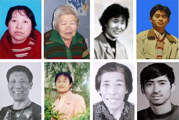 上图中,上排从左至右:累计陷冤狱十年,褚连荣2015年4月含冤离世;刘玉兰一家两人被迫害致死;朱玉兰在监狱被迫害离世;优秀教师张先龙;