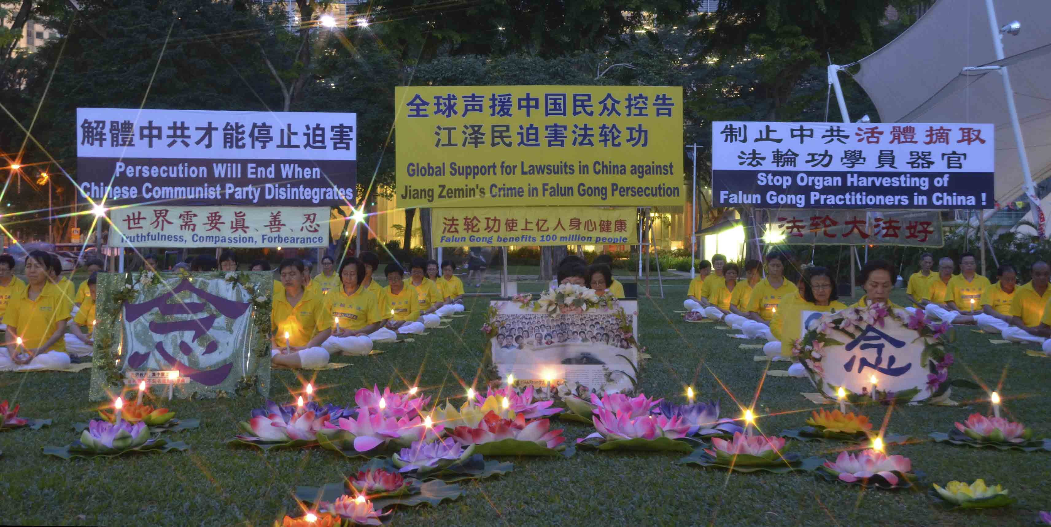 ![]() 图3:新加坡法轮功学员举行烛光夜悼,悼念被中共迫害致死的中国大陆法轮功学员。 |