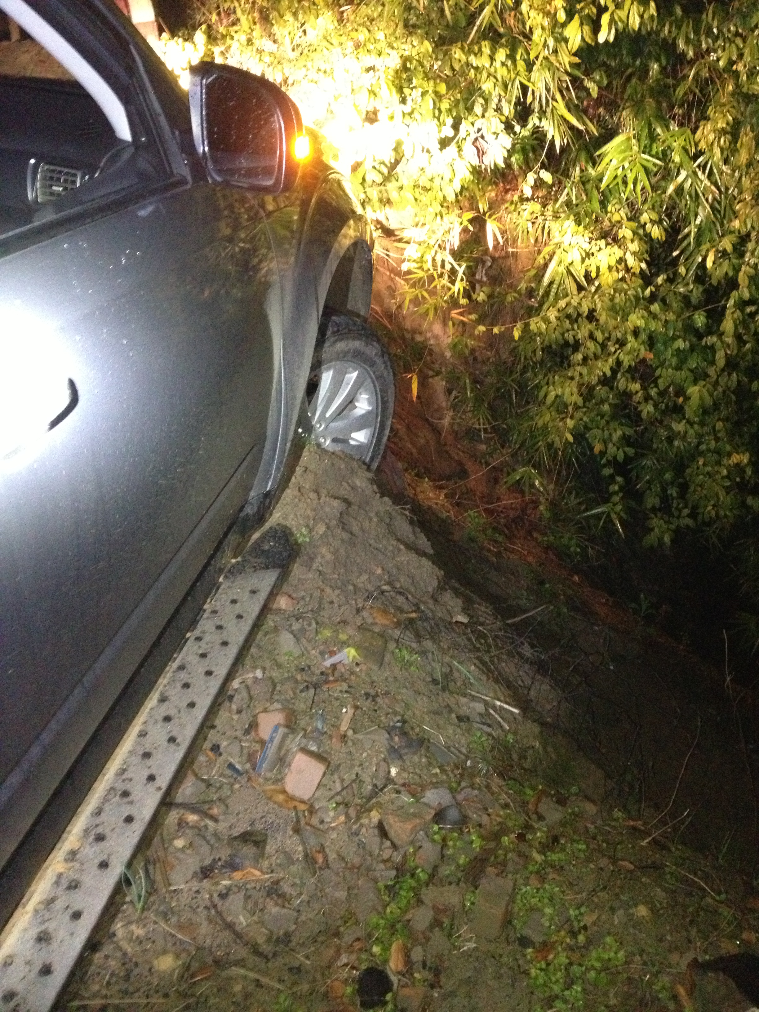 ![]() 图:车祸现场:右前轮基本悬空。 |