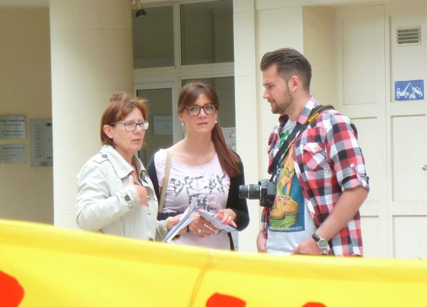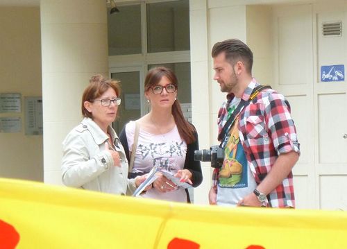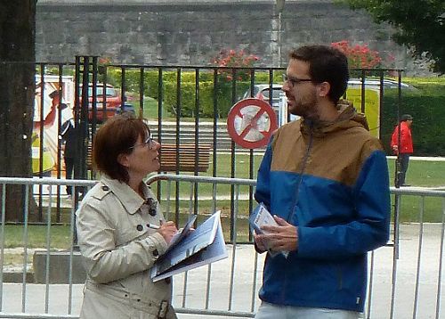 旺角公交车站前,一位二十多岁的年青人手指游行队伍,转头对他两位同伴说:“你看,那不就是退党保平安吗!”他们对讲真相的学员说:“我老早就知道中国共产党不好、很坏,所以我们坚持不肯入团、入党。”他们表示到德国读书已有三年,早在德国办过退出少先队,这次是从德国来港旅游。