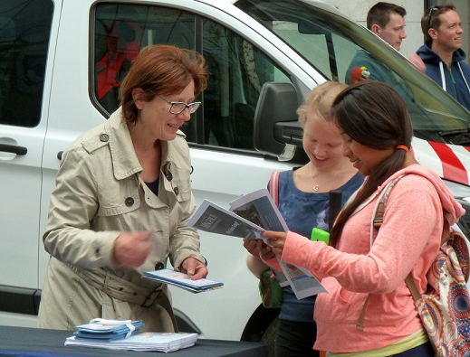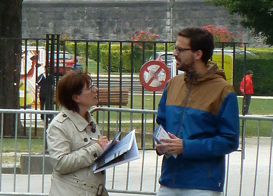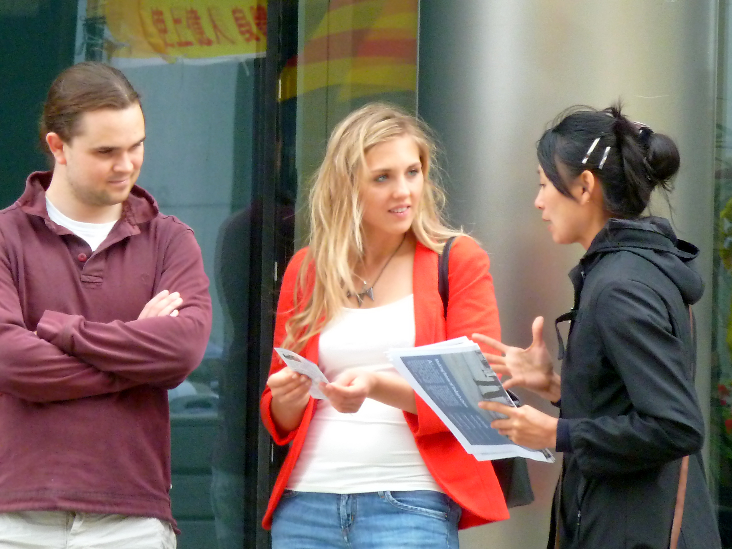 弥敦道上,一位六十多岁的老太太眼看法轮功学员阿容在讲真相,她直盯着阿容手上A4大小的真相展板上“法轮大法好”、“世界需要真善忍”的真相,不停微笑并且轻轻点头向阿容示意。当阿容走近她身旁,老太太迫不及待的表示要三退,取了“华欢笑”退党后,老太太笑容满面的向阿容谢个不停。
