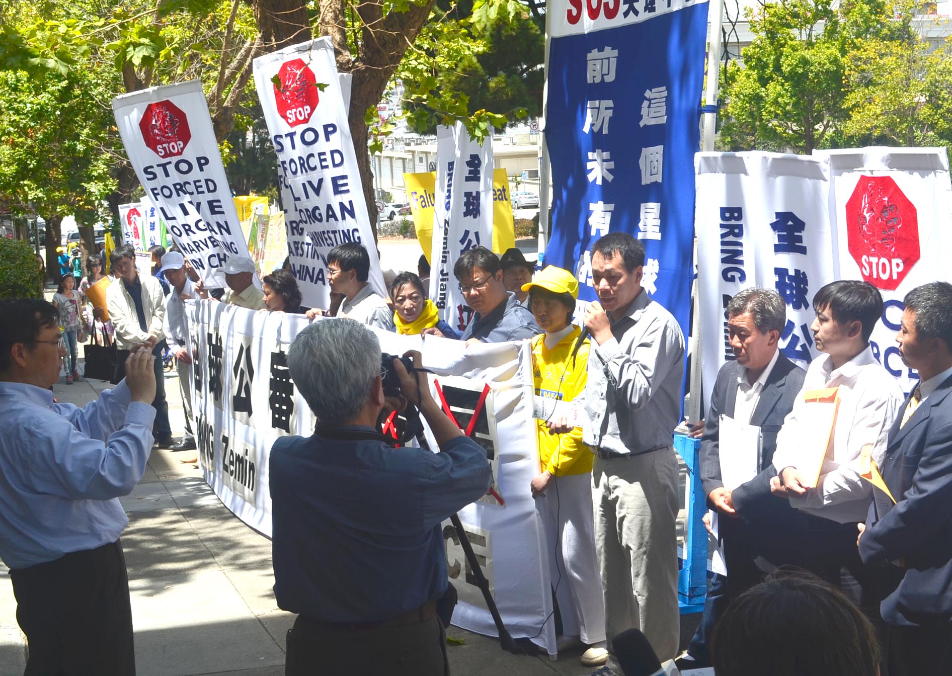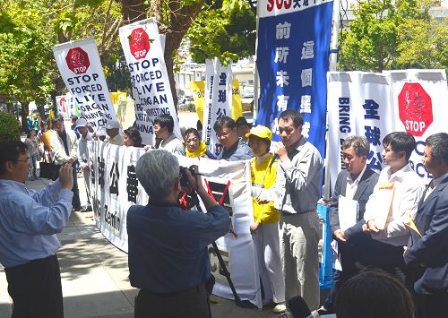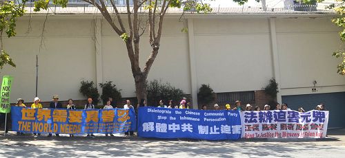 ![]() 图1-6:法轮功学员在旧金山中领馆前集会,声援全球“诉江”大潮 |