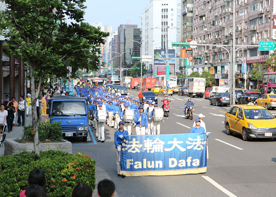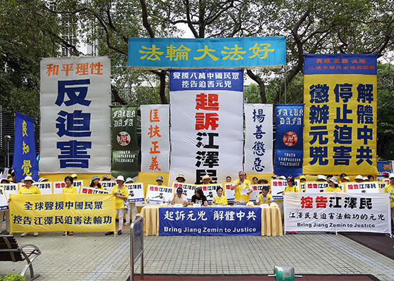 七月十八日,台湾法轮功学员举办的“声援诉江大游行”,在大陆游客来台必到的一零一大楼旁信义广场举行。