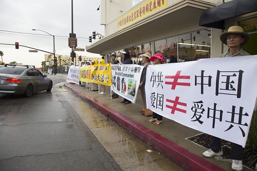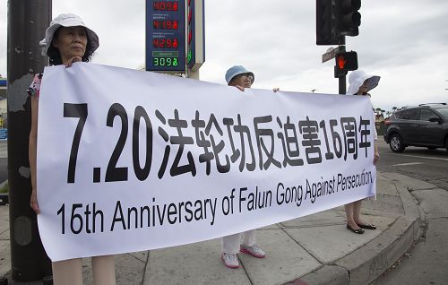 【明慧网二零一五年七月二十日】二零一五年七月十八日下午,洛杉矶法轮功学员在华人聚居的圣盖博市(San Gabriel)山谷大道(Valley Blvd.),筑起了真相长城,声援全球诉江大潮,呼吁尚未退出中共党、团、队的民众明白真相,在历史巨变的关头选择美好的未来。