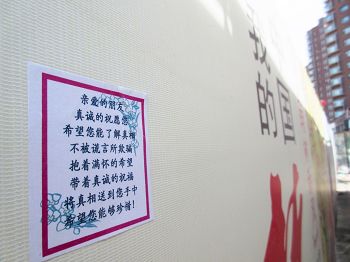 十日下午,几位法轮功学员到邮局询问为什么不让寄诉江状,邮局人员说:是“610办”(和公安局)的人给他们施加压力,不让寄了。同修就给邮政人员讲了为什么“诉江”的真相。
