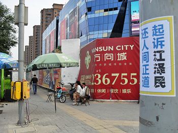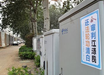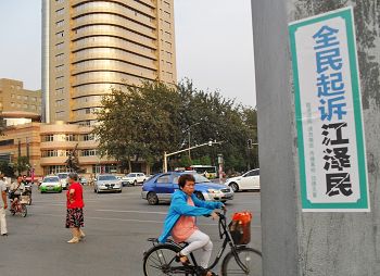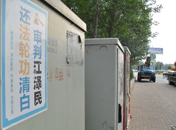 河北省廊坊市多处可见“起诉江泽民”的真相标语