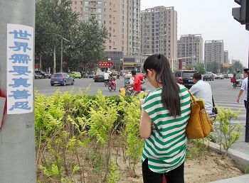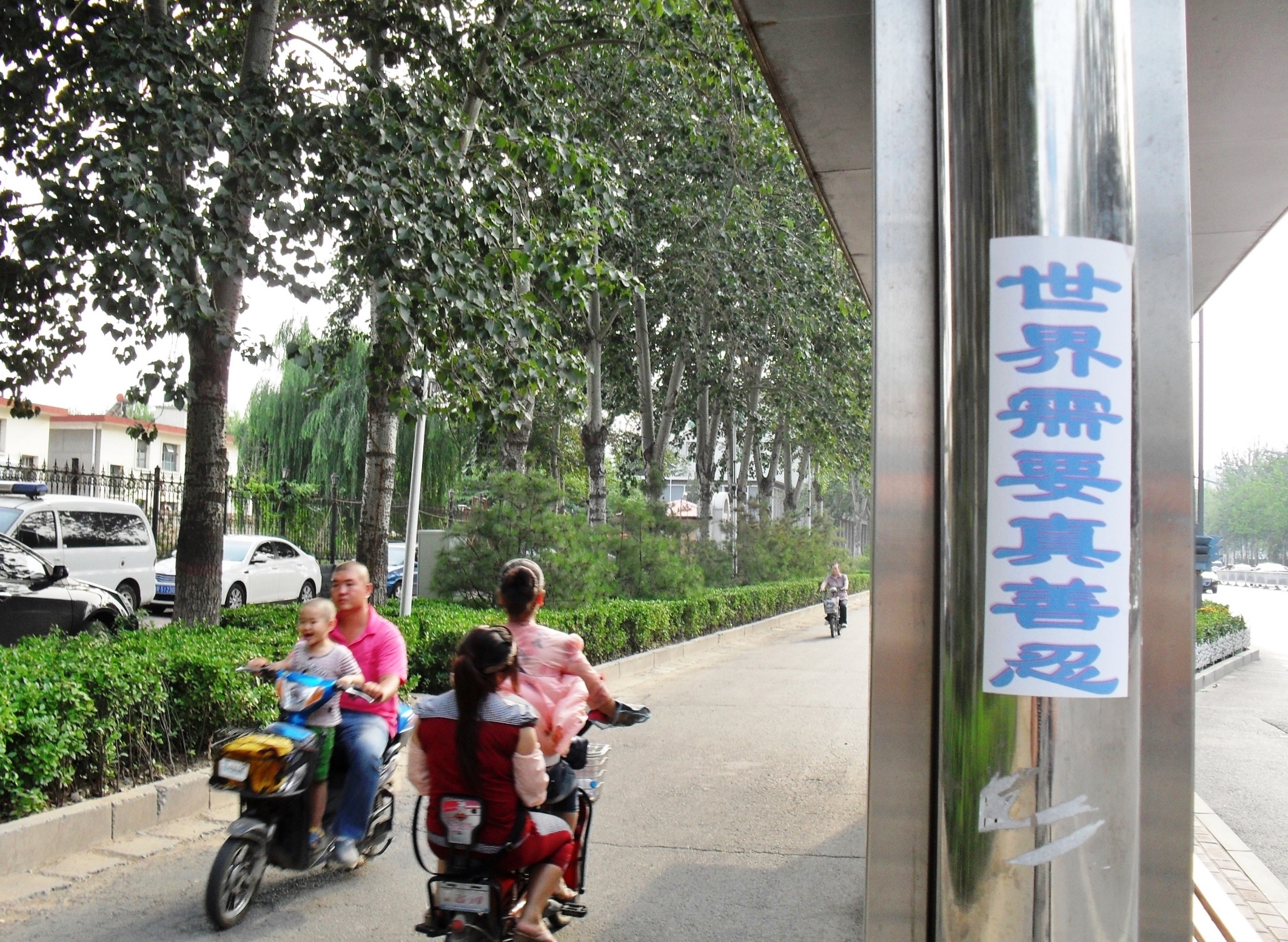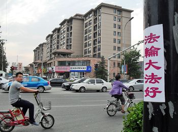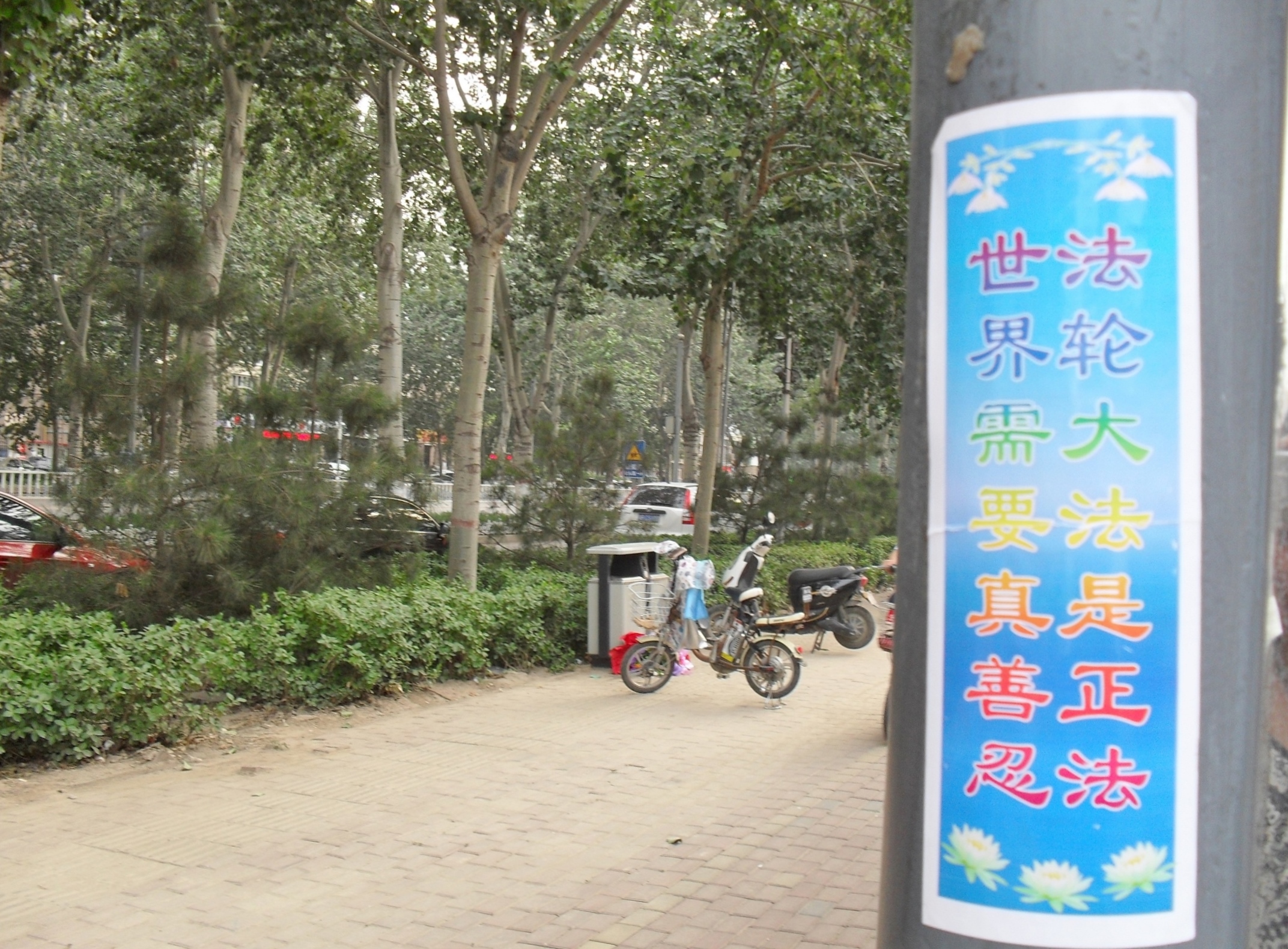 【明慧网二零一五年七月二十日】在河北廊坊的大街小巷,人们都可见到真相标语:“世界需要真善忍”、“法轮大法好”、“真善忍好”、“停止