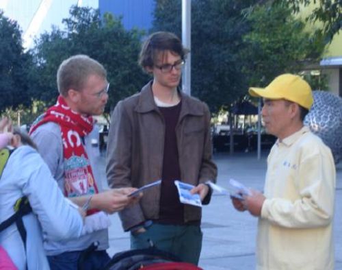 青年学生丹尼尔久久不肯离去,他向学员询问什么是法轮功,中共为什么如此残酷迫害善良民众。了解真相后,他感到非常愤慨和震惊,在征签簿上郑重签名,并表示一定要把真相告诉更多的人。