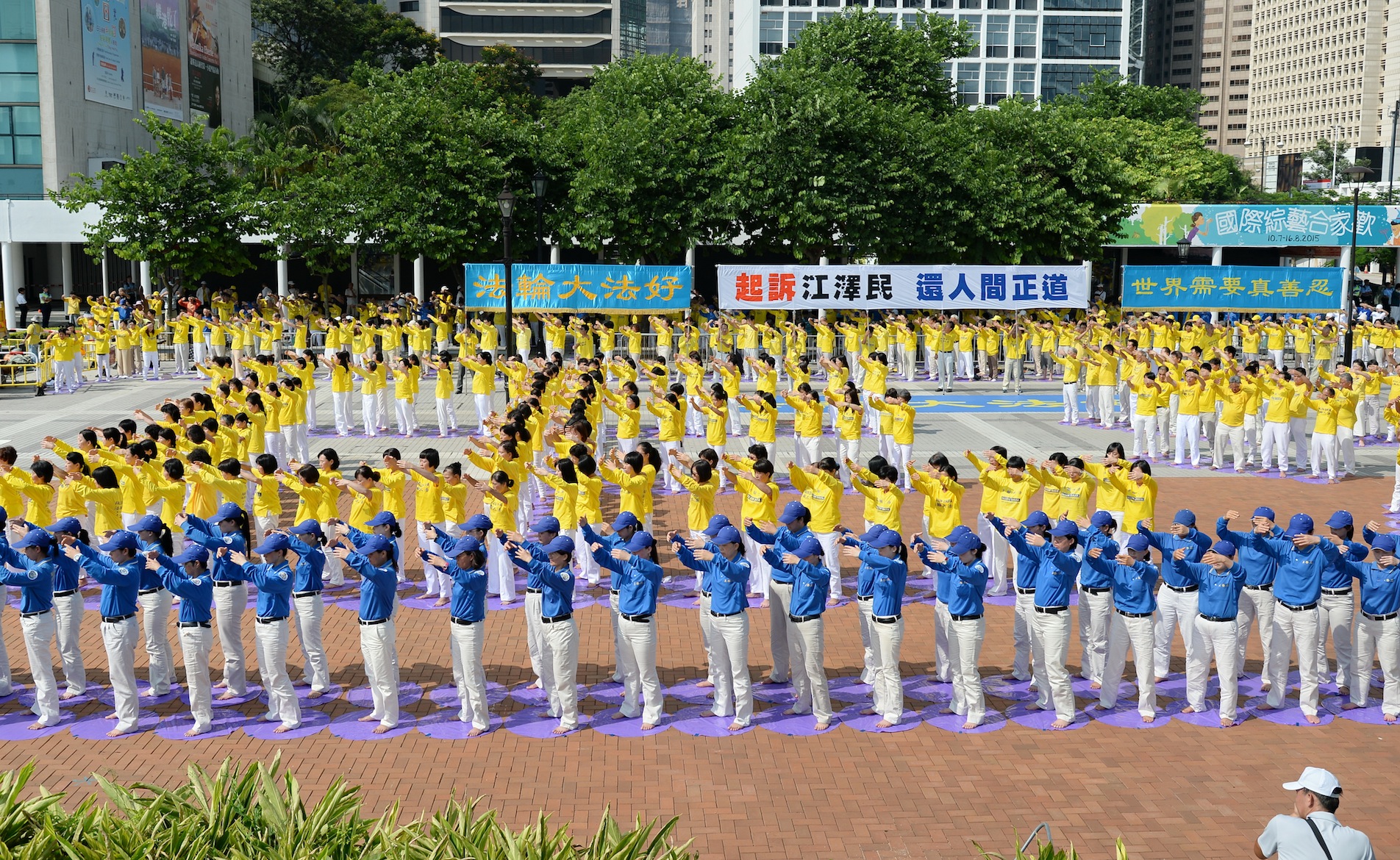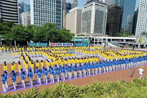 【明慧网二零一五年七月二十二日】(明慧记者郑语焉香港采访报导)二零一五年七月十九日上午,数百名法轮功学员在香港中环爱丁堡广场排出“正法”二字,并进行集体炼功。这是十年之后,香港再现法轮功学员集体排字大炼功的胜景。庄严而祥和的画面向世人展现法轮大法的美好与殊胜,以及正法必成的非凡意义。对参与活动的法轮功学员来说,这样的机会弥足珍贵,同时也感到非常荣耀。