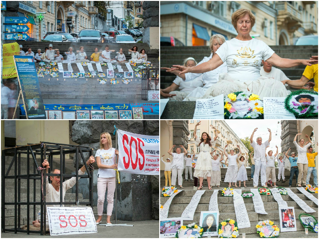七月二十日,乌克兰首都基辅市、第涅伯彼得罗夫斯克市大法弟子举行七•二零十六周年反迫害活动。活动期间,大法弟子演示功法、举行酷刑展、向世人广泛征签以及悼念受到中共迫害离世的法轮功学员。