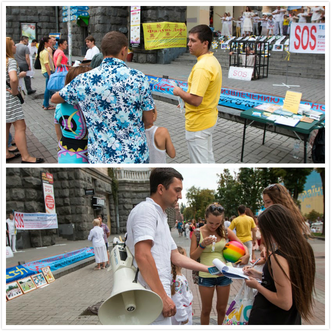 紧张局势下,由于当地民众曾听说,在乌政府军和分离分子的战争中,受伤的士兵、重伤伤员身体器官会被摘除的消息,因此恐慌不安,所以当市民看到反对活摘的活动常会非常敏感。当学员从道德价值上和市民谈论反对中共活摘的意义,是对中共反人类罪行,做出刻不容缓的截窒,也是制止共产邪恶的蔓延,帮助停止这场迫害,就是帮助我们自己停止灾难时,世人多会思考,从争论的情绪转向平和、善良,继而签名表达反活摘的意愿。