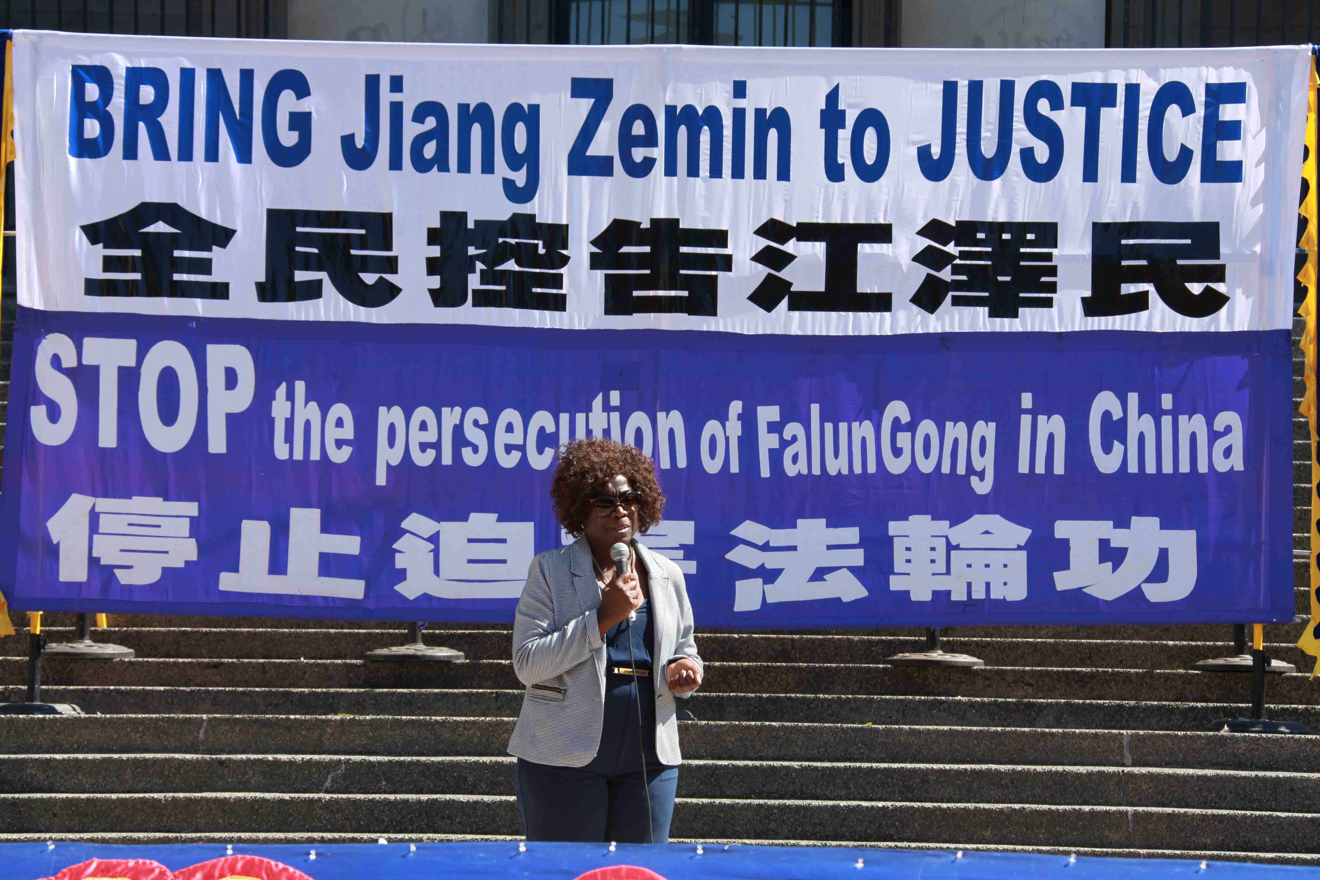 温哥华法轮大法学会、温哥华的《大纪元时报》和新唐人电视台代表何坚先生在温哥华市中心举行集会发言中表示: “一九九九年七月二十日,中共前党魁江泽民发起了对法轮功的镇压,在中国大陆大批法轮功修炼者被非法拘留、劳教、判刑、酷刑对待,甚至被活体摘取并盗卖器官。全中国乃至全世界民众都受到中共诬蔑谎言的欺骗和毒害。”