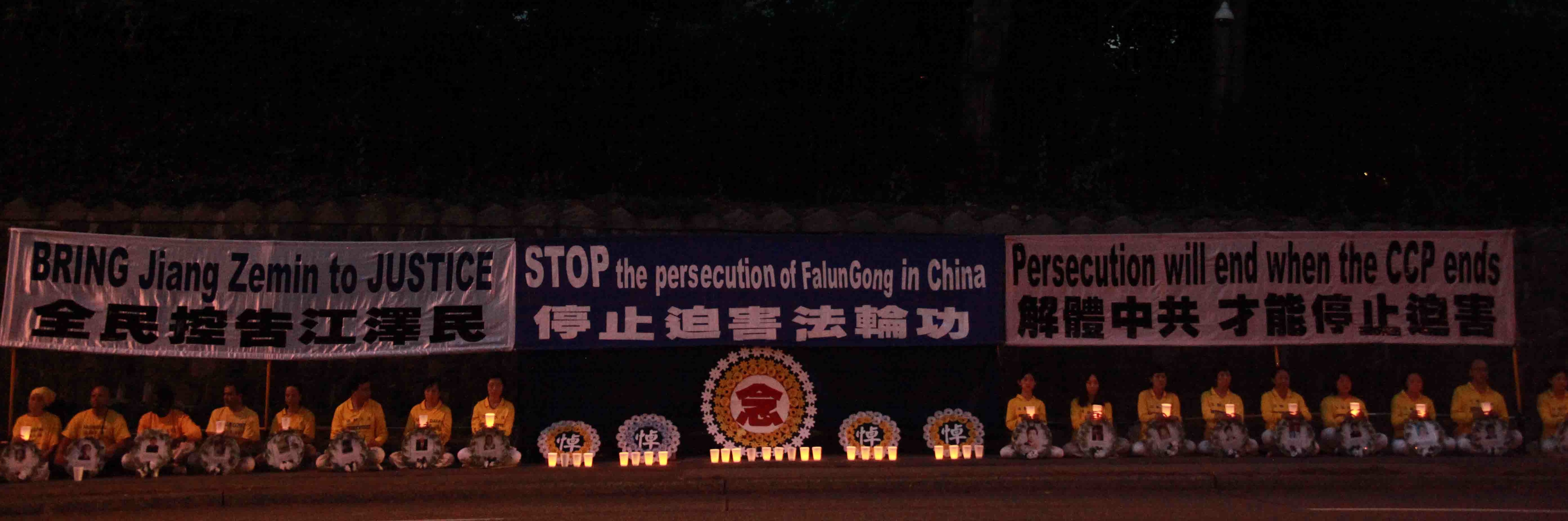 七月二十日晚,温哥华法轮功学员和支持者在中领馆前举行烛光悼念活动,场面肃穆安详。很多过往的车辆不断鸣笛表示对法轮功学员反迫害的支持。