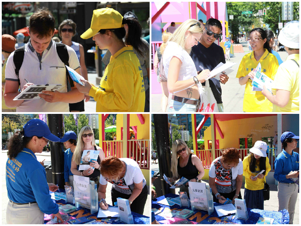 七月十九日,温哥华法轮功学员和支持者在温哥华市中心艺术馆前举行的集会,吸引了很多民众停留了解真相,很多民众现场签名支持法轮功学员反迫害和声援控告迫害元凶江泽民。加拿大国会议员Peter Julian 先生给集会发来书面支持,赞扬法轮功学员对信仰和人权所作出的努力,表示要与法轮功学员一起努力使世界更美好。
