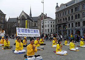 七月二十日,荷兰学员来到首都阿姆斯特丹达姆广场设立真相点,传播法轮功的真相,及声援全球起诉江泽民。