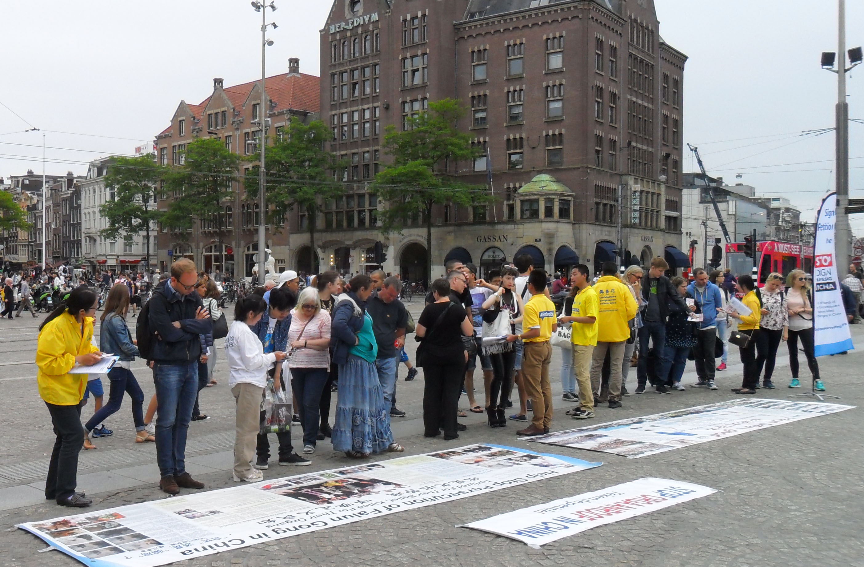 ![]() 图1:“七•二零”周年,荷兰学员在首都阿姆斯特丹达姆广场传播真相,呼吁制止迫害。 |