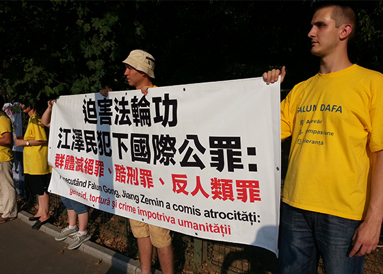 七月十九日中午和二十日傍晚,布加勒斯特法轮功学员来到中共驻罗马尼亚使馆前举行活动,抗议中共对法轮功长达十六年的残酷迫害。