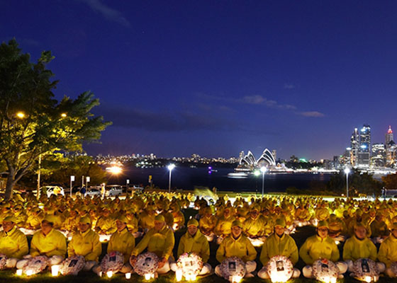 悉尼法轮功学员排字、烛光悼念 呼吁结束迫害(图)