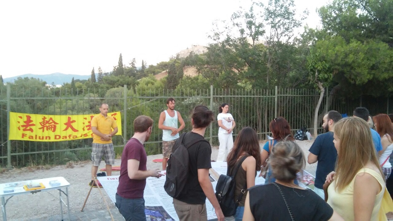 在塞萨洛尼基海湾地区,很多人都在寻找精神提升的途径,有位女士询问法轮功学员,法轮功是否是他所找寻的真相,是否是他生命的意义?这位学员回答道,在他找寻真理的时候,总觉得一个人除了上班,睡觉最后走向死亡,没有别的生活意义是很可悲的,他说:“生命的意义是提高自我,成为向内找自我反省的人,这也是我们的责任。”这位女士表示,现代的人总是看别人的错误,批评别人而不反省自我。