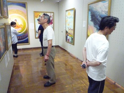 画展期间,也有几位居住在静冈的日本小有名气的画家和艺术家前来观赏,她们对法轮功画家的作品和艺术造诣赞不绝口,认真品味每幅作品的深刻内涵,久久不愿离去,声称这是难得一见的艺术盛宴。