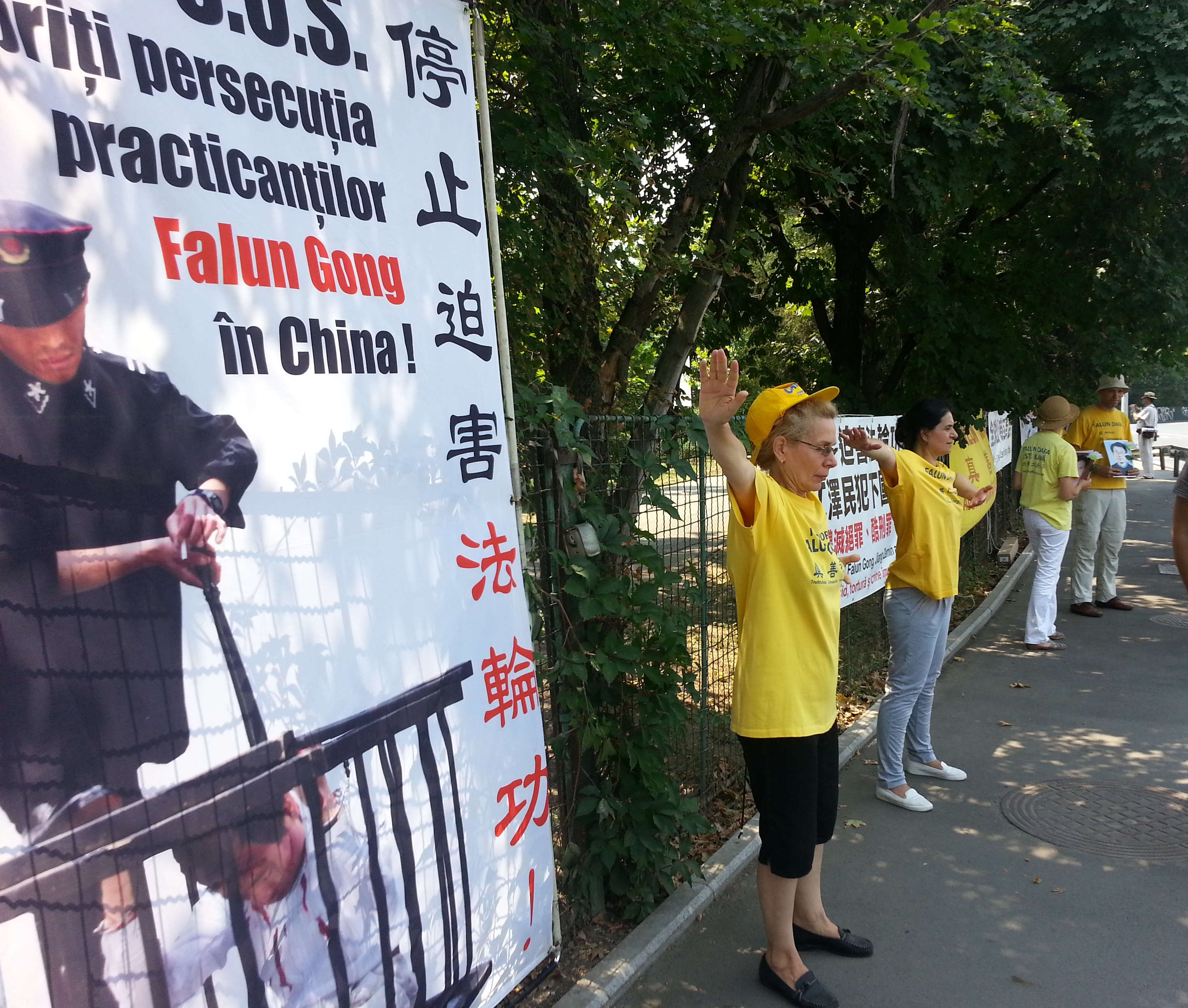 一九九九年的七月二十日,江泽民集团动用所有国家机器在中国对法轮功群体发动全面残酷的打压和迫害、并煽动民众仇恨法轮功。面对中共的暴行,罗马尼亚法轮功学员没有退却,十六年来大家坚持秉承“真善忍”精神,把法轮功的真相传播到罗马尼亚的每一个角落。大家自 己出钱做了真相展板、条幅、传单、真相光碟等,并每年多次到罗马尼亚各个城市举办“真善忍美展”和弘法活动。十几年来,法轮功学员每周在布加勒斯特市的Herăstrău公园的湖边坚持炼功弘法,即使遇到风霜雨雪天气,也从未间断。在大家的努力下,很多罗马尼亚民众都明白了中共残酷迫害法轮功的真相,也吸引了更多的人前来学功。