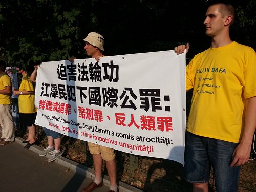 ![]() 图1-2:法轮功学员在罗马尼亚中使馆前抗议中共迫害 |