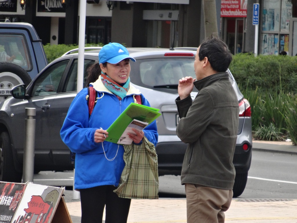 在汉密尔顿政府工作的华人胡先生来新西兰已经二十年了,是一位基督徒。原先不太了解真相的他和法轮功学员清心女士交谈后,表示中共迫害信仰是不对的,他会去了解更多相关真相。清心女士和他谈了三百年前强大的古罗马帝国因为迫害基督徒而走向覆灭的历史,并告诉他信神的人应远离无神论的中共,选择正义和善良。胡先生最后以“胡吉安”的化名退出了中共的共青团和少先队附属组织。