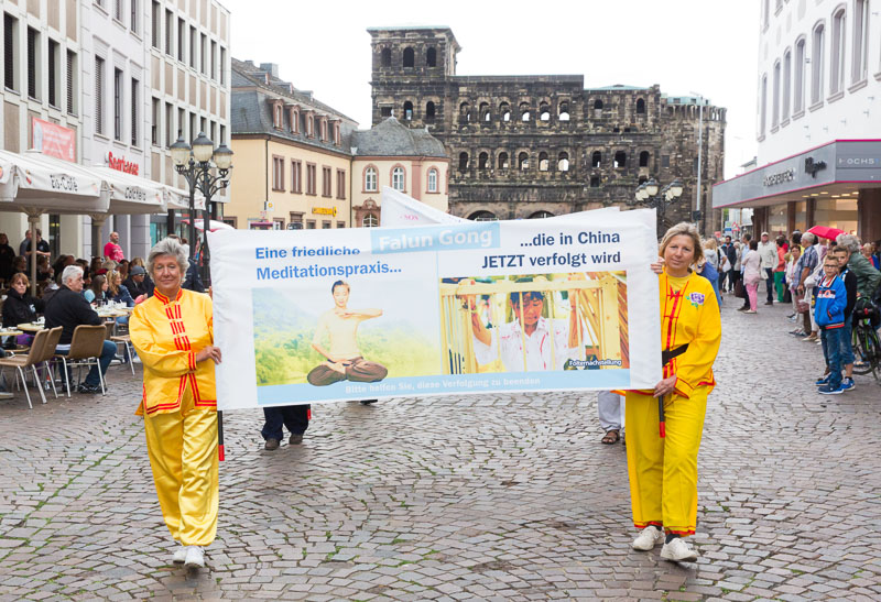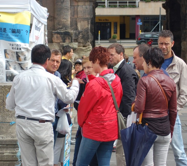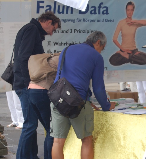 皮特(Peter)大概五十多岁,来自莱茵河附近另一个城市。他在信息台时已经了解了法轮功真相,并签名反迫害。在市中心主市场,他又遇到了游行队伍。他认为,中共再也无法象以前一样封锁信息,越来越多的中国人会突破封锁了解真相。他说,如果每个人,哪怕每天做一点努力 (反对迫害),只要坚持,积少成多,迫害就会停止。