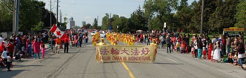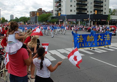 多伦多法轮功学员组成的天国乐团和腰鼓队每年都收到很多邀请,像往年一样,今年的这天内又参加了两个游行,一个是上午十一点开始的密西沙加国庆节游行,接着赶场参加下午四点的大多伦多士嘉堡市的国庆节游行。近十年来,活跃于各社区的天国乐团和腰鼓队,每到之处都给人们带来欢乐,很多观众都表示非常高兴看到他们的到来。