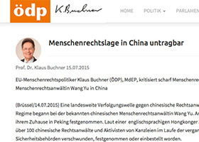 - 欧议员要求释放律师王宇 声援诉江(图)- 欧洲议会资深人权委员会议员克劳斯•布赫纳先生敦促中共当局立即无条件释放为法轮功学员辩护的大陆知名维权女律师王宇。