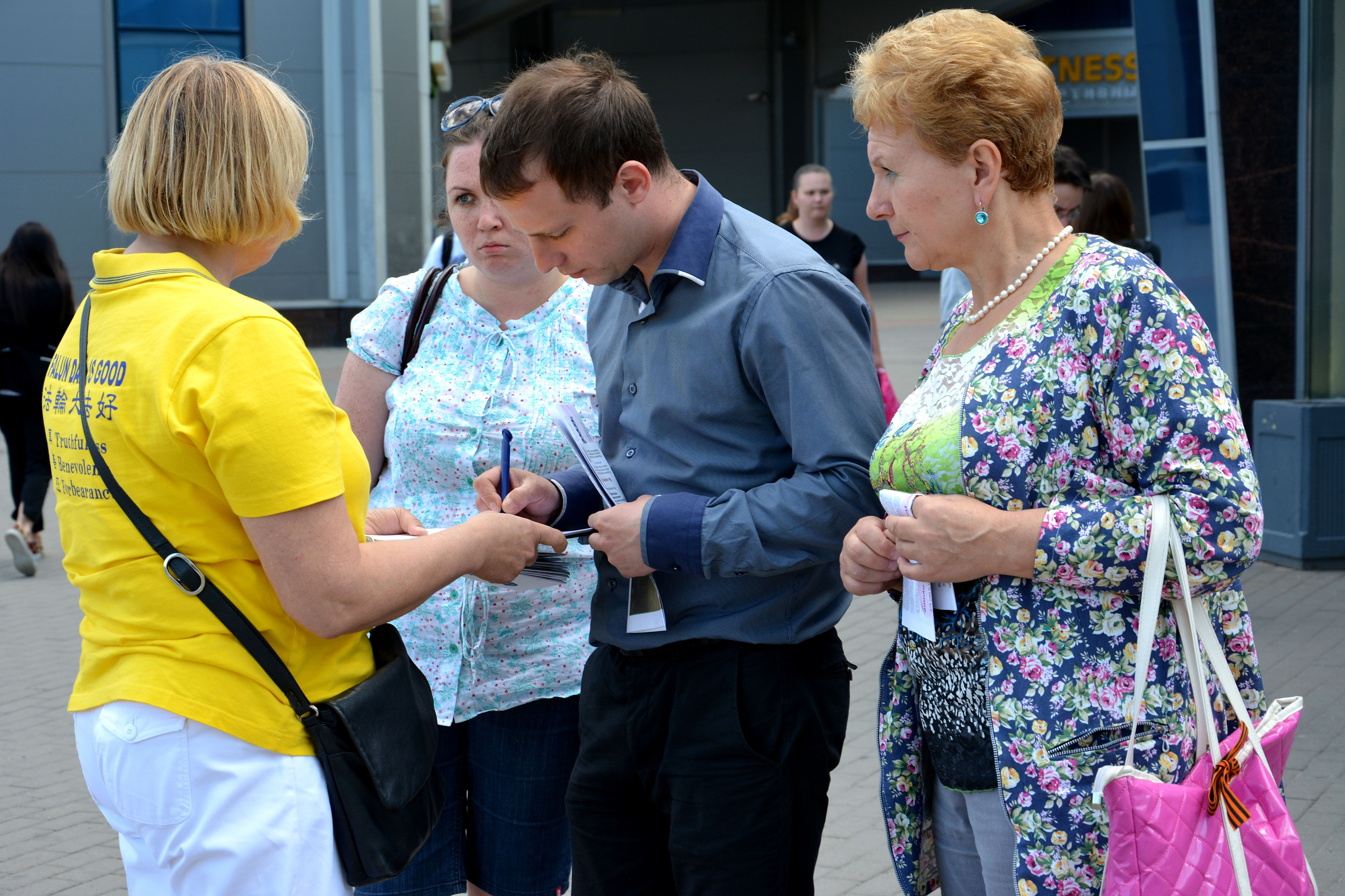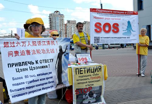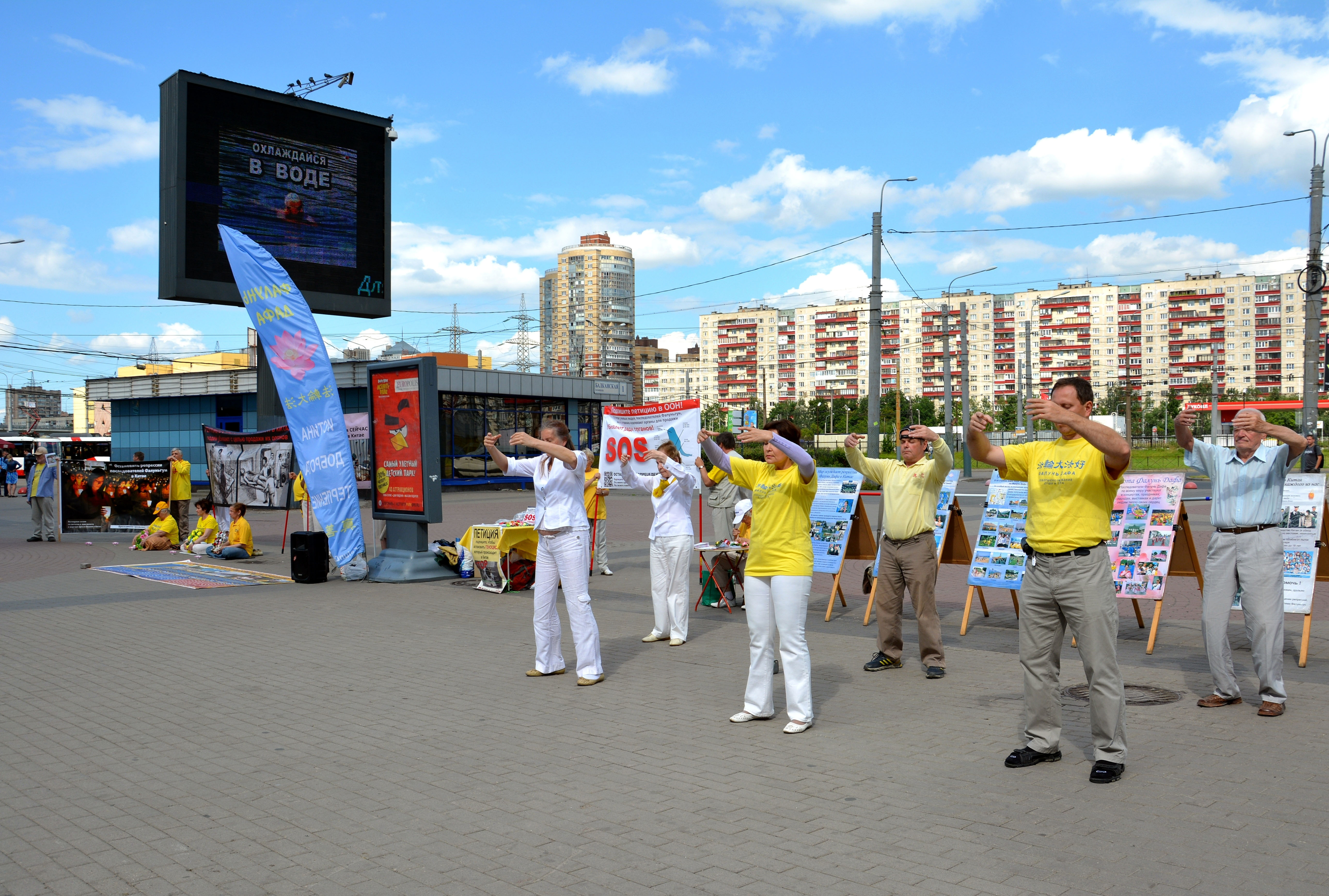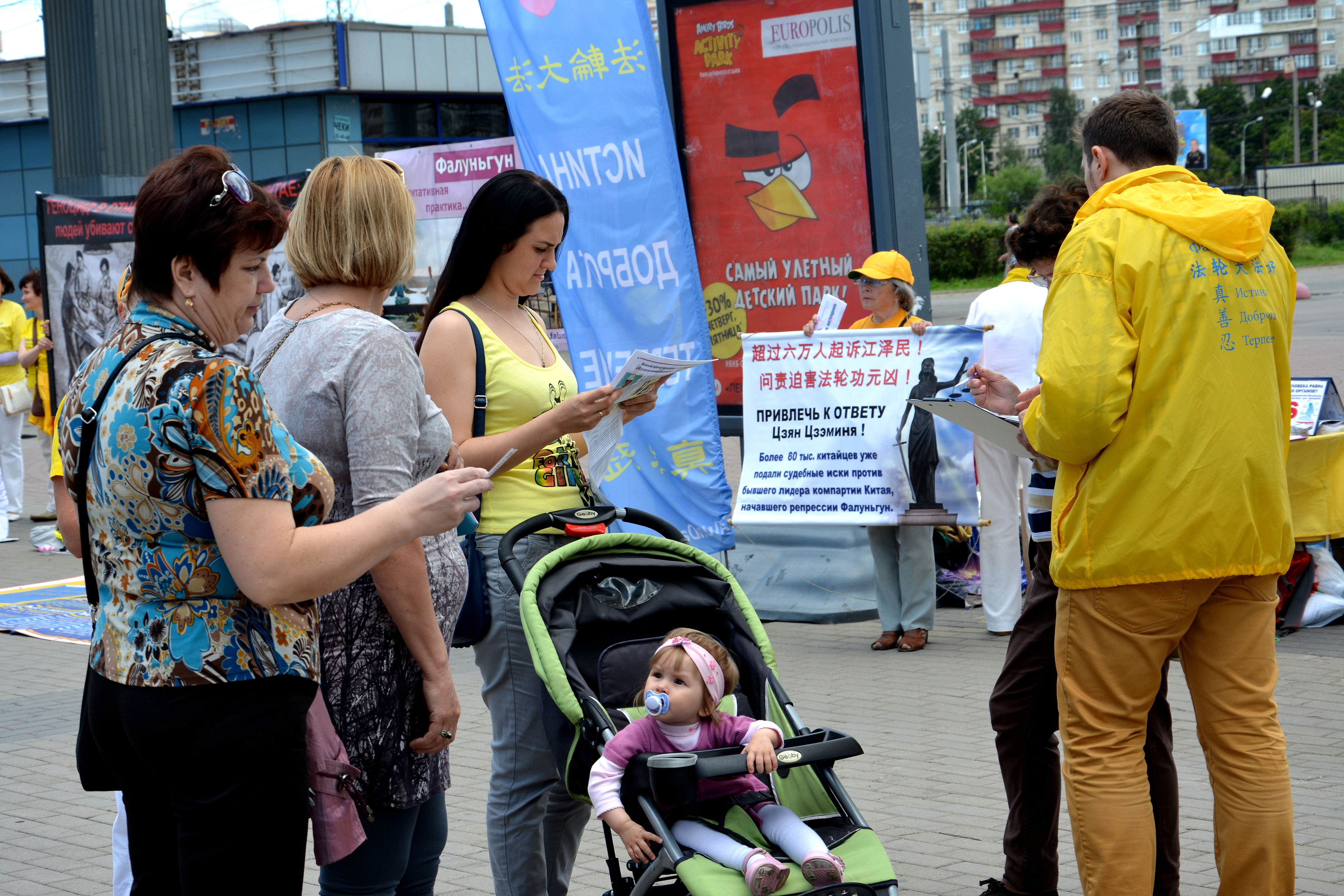【明慧网二零一五年七月三十日】中共从一九九九年七月二十日开始迫害法轮功,至今已十六年,而全球法轮功学员为制止迫害而做出的努力从未停止过。二零一五年七月二十日以来的一周时间里,俄罗斯圣彼得堡法轮功学员连续举行了各种活动,向民众讲述发生在中国的对法轮功修炼者的残酷迫害。他们还每天在中共驻圣彼得堡总领事馆前抗议,并呼吁社会各界共同制止中共暴行。