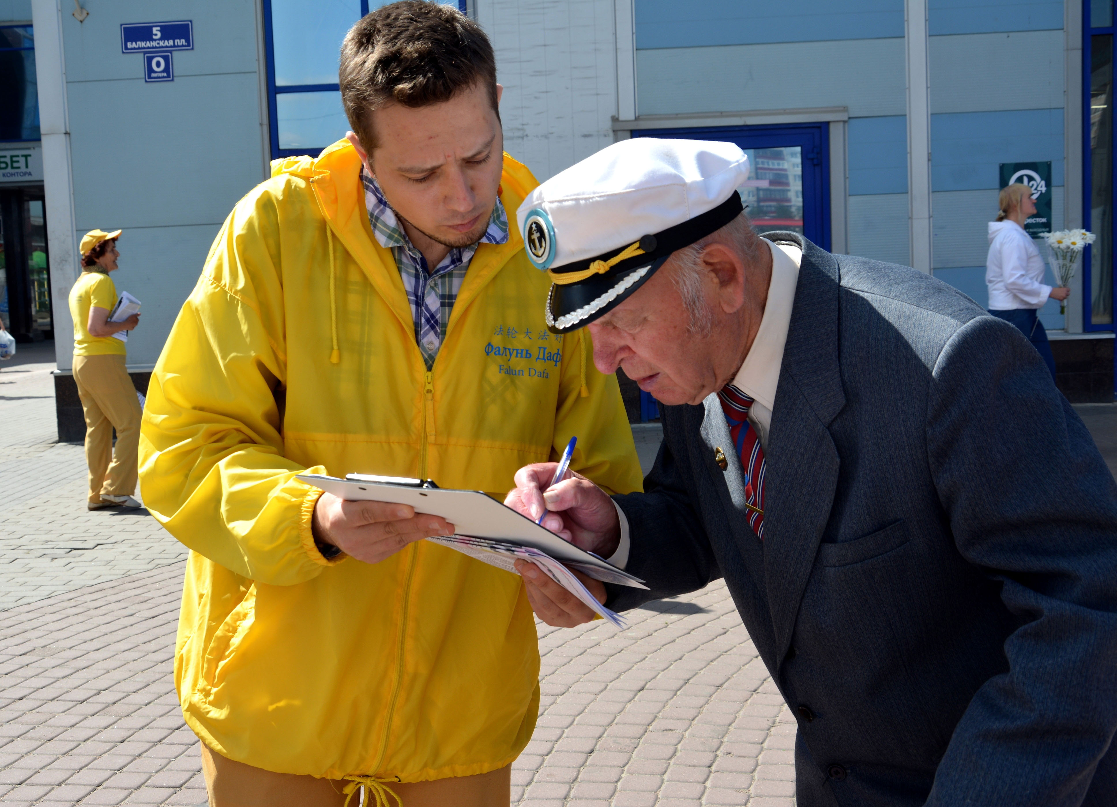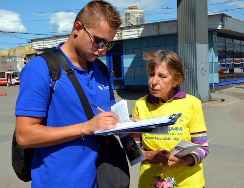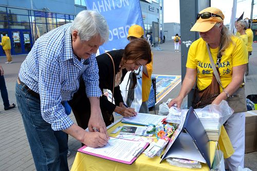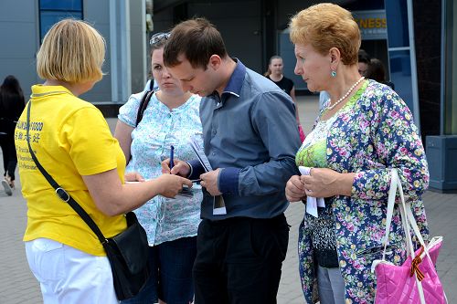 图3-7:圣彼得堡市民纷纷签名谴责中共迫害法轮功