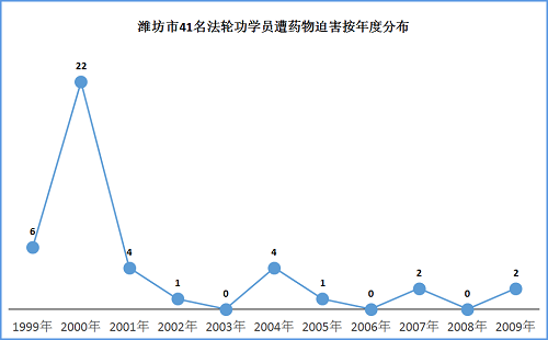 以下是根据明慧网报道而整理的山东省潍坊市41位法轮功学员因坚持修炼遭药物迫害的案例。其中,28人被劫持到神病院关押迫害,13人被非法囚禁期间遭药物迫害。这仅是冰山一角。