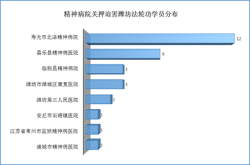 以下是各精神病院医院非法关押潍坊市法轮功学员的人数: