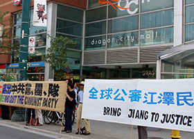 - 多伦多唐人街“声援诉江大潮”真相长城(图)- 二零一五年七月六日下午,加拿大多伦多部分法轮功学员在唐人街举行了“声援诉江大潮”真相长城活动。
