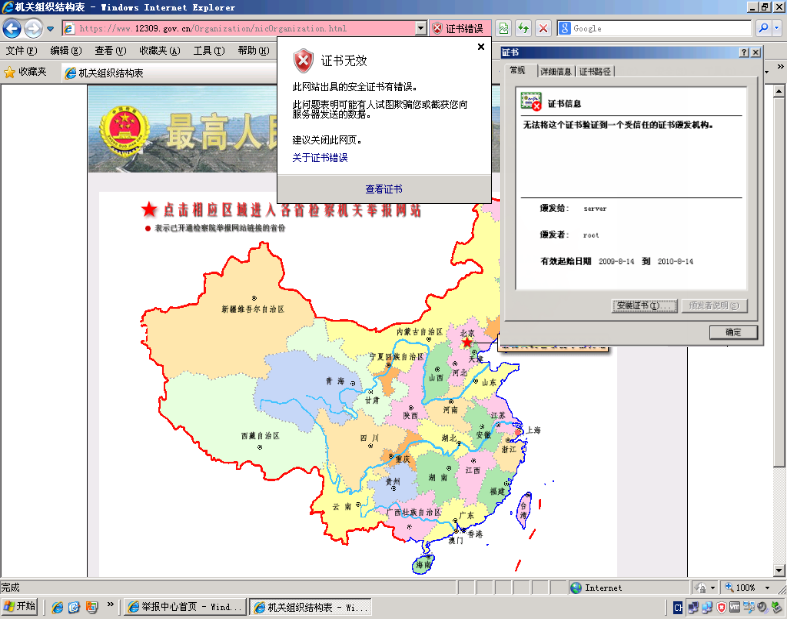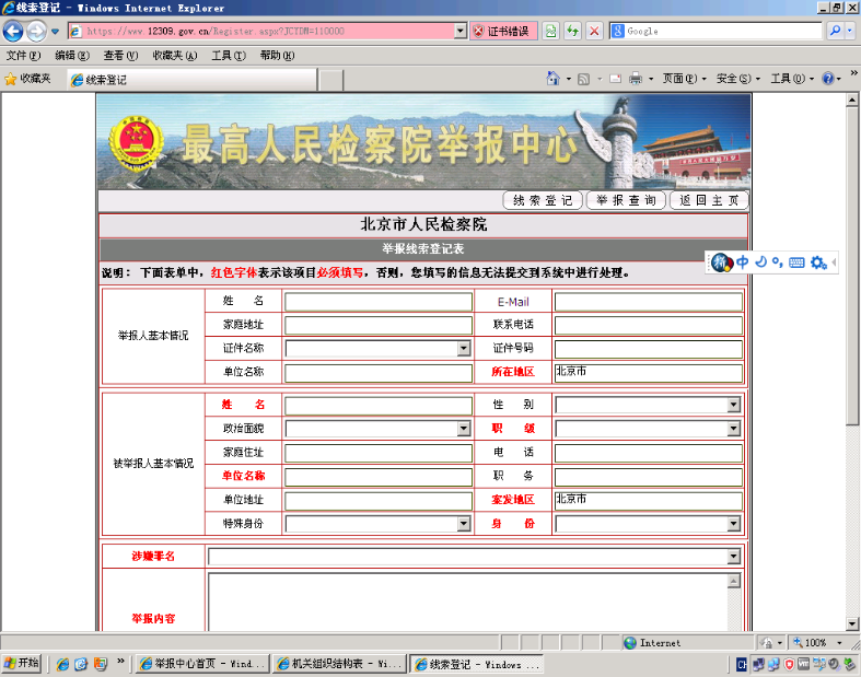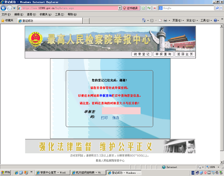 3、出现图4后,直接点击中国地图上的“最高检察院举报网站”